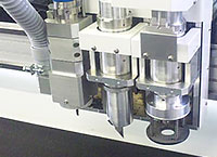 ルーターと振動カッターの連動加工の様子
