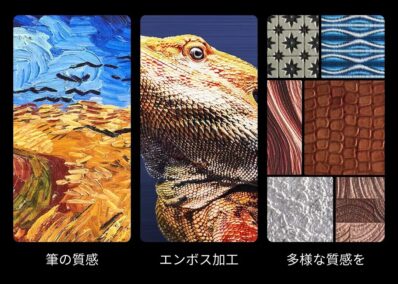 最大5mmの厚みを持たせた立体印刷が可能。触れて楽しめるリアルな質感を再現します。
