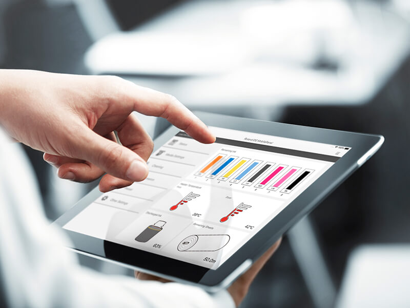 VG2シリーズは、機構設計、各動作、内蔵ソフトウェア、操作パネル、メンテナンスシーケンスなどを徹底的に改善。ユーザーエクスペリエンスを大幅に向上させるとともに、オペレーション全体の効率化を実現しました。また、Roland DG Mobile Panel 2を利用すれば、テストプリントやクリーニング機能の実行など、従来本体パネル上で行っていた操作を、スマートフォンやタブレット上で行える上、マニュアルの確認などを手元ですぐに行うことができます。