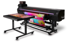 - ロール素材・リジッド(ボード)素材のダイレクトプリントにも 対応するハイブリッドUVインクジェットプリンタ